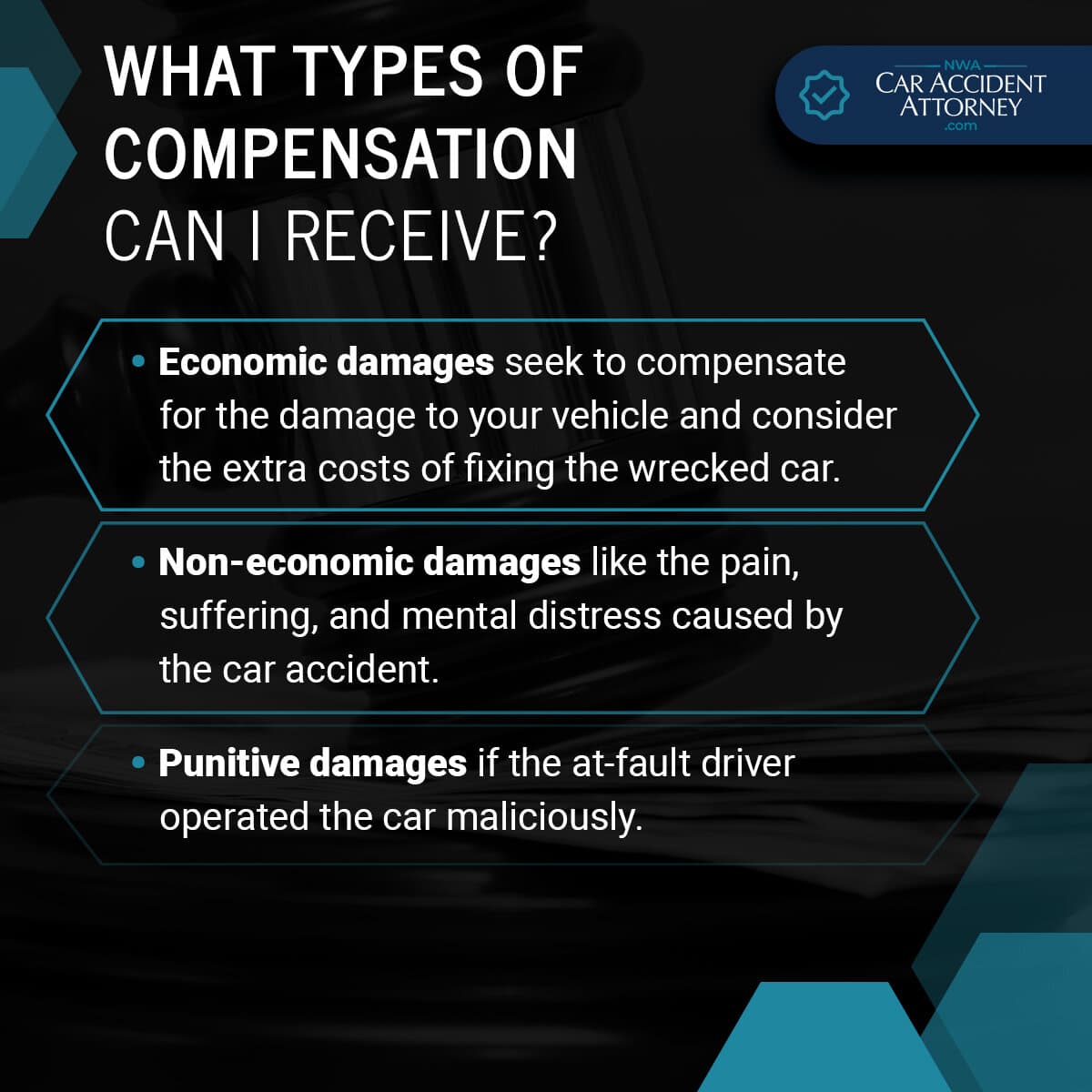 The compensation you can receive for a truck accident claim in Fayetteville, Arkansas, includes three (3) types of damages: